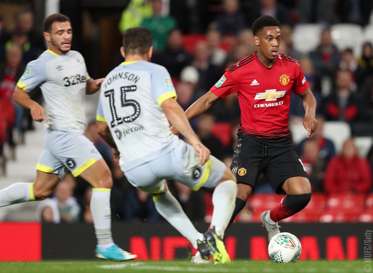 وفي لقاء اخر صدم مانشستر يونايتد جماهيره بعد أن خرج من البطولة بعد الخسارة امام ديربي كاونتي بنتيجة 8-7 بضربات الترجيح بعد ان انتهى الوقت الاصلي بالتعادل الايجابي بهدفين لمثلهما، كما وتعرض حارس الشياطين الحمر روميرو للطرد ليكمل اليونايتد المباراة ب10 لاعبين وتمكن فيلاييني من تعديل النتيجة في الوقت بدل عن ضائع لكنه خسر في ضربات الجزاء بعد ان اضاع فيل جونز الركلة الثامنة .