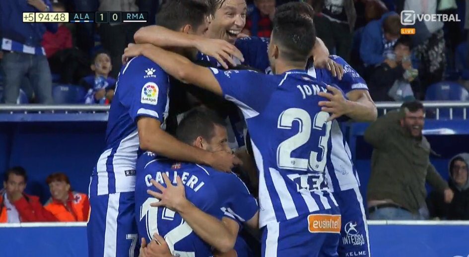 واستقبل نادي ديبورتيفو الافيس صاحب المركز السادس نادي ريال مدريد صاحب المركز الثاني بفارق الاهداف عن المتصدر برشلونة حامل اللقب .حيث انتهى الشوط الاول بنتيجة سلبية 0 – 0 . في الشوط الثاني سنحت للفريق الملكي عدة فرص لحسم المواجهة لكنها وقفت امام حارس المرمى الذي زاد عن مرماه وساعد فريقه للحفاظ على التعادل حتى اتت الدقيقة 95 حيث انقلب السحر على الساحر وسجل مانويل غارسيا د 95 هدف قاتل منح اصحاب الارض الفوز على حساب الفريق الملكي.